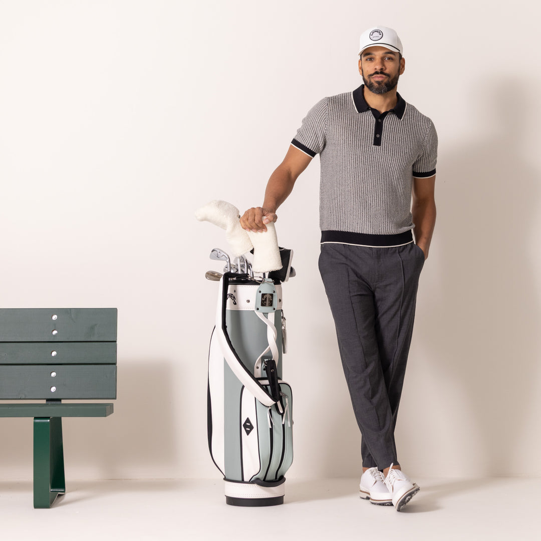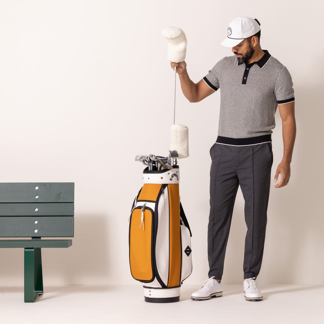 Introducing the Jones Rider Bag - Crafted from high-quality materials, the Jones Rider is designed to withstand the rigors of the golf course while maintaining its stylish and timeless look. This bag is perfect for golfers who want to enjoy their ride without sacrificing the simplicity and nostalgia that Jones is known for.