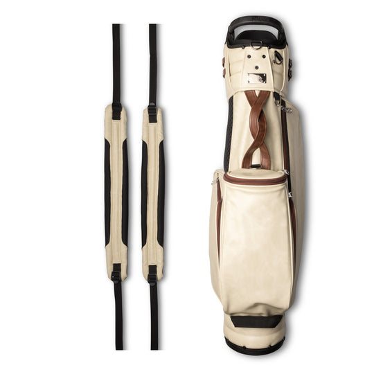 Designed with a versatile single or double shoulder strap configuration the Trouper 3.0 is your ideal companion on the course. A large insulated front cooler pocket has enough space to keep four 16oz cans cold. The two newly improved fleece-lined valuable compartments and seven-pocket design secures valuables while allowing for straightforward access. A large five-way divider allows for simple organization and an easy pull for all 14 clubs even with oversized grips. Simply put the Trouper 3.0 delivers an effortless and reliable experience for any player round after round. Featuring All-New Straps and a bolstered stand mechanism.