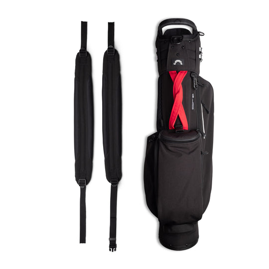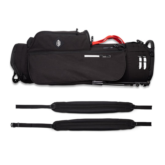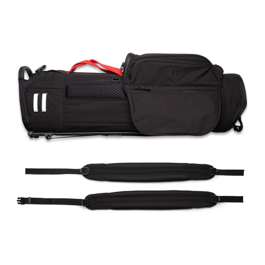 Designed with a versatile single or double shoulder strap configuration, the Trouper 3.0 is your ideal companion on the course. A large insulated front cooler pocket has enough space to keep four 16oz cans cold. The two newly improved fleece-lined valuable compartments and seven-pocket design secures valuables while allowing for straightforward access. A large five-way divider allows for simple organization and an easy pull for all 14 clubs, even with oversized grips. Simply put, the Trouper 3.0 delivers an effortless and reliable experience for any player round after round. Featuring All-New Straps and a bolstered stand mechanism.