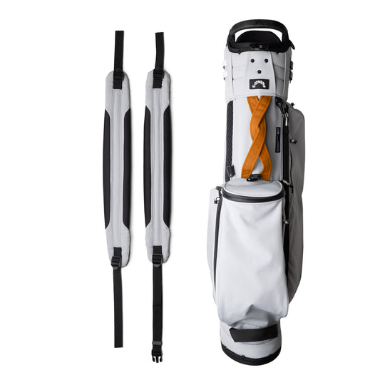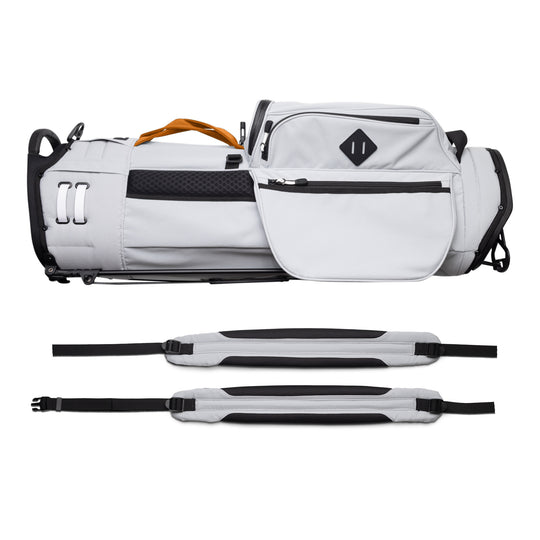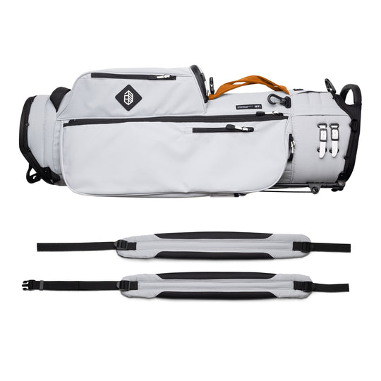 Designed with a versatile single or double shoulder strap configuration, the Trouper 3.0 is your ideal companion on the course. A large insulated front cooler pocket has enough space to keep four 16oz cans cold. The two newly improved fleece-lined valuable compartments and seven-pocket design secures valuables while allowing for straightforward access. A large five-way divider allows for simple organization and an easy pull for all 14 clubs, even with oversized grips. Simply put, the Trouper 3.0 delivers an effortless and reliable experience for any player round after round. Featuring All-New Straps and a bolstered stand mechanism.